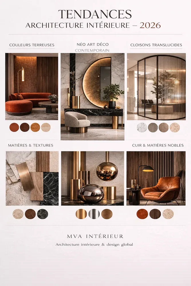 Les intérieurs de 2026 évolueront vers des espaces plus chaleureux, texturés et expressifs. Parmi les grandes directions qui se dessinent, nous retrouvons :